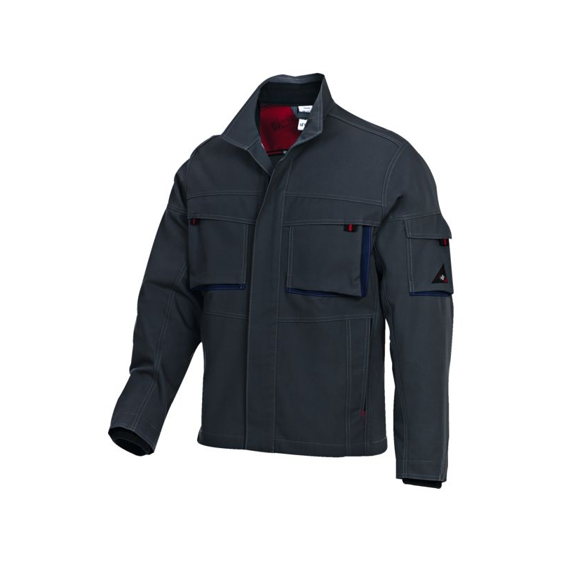 65% coton 35% polyester - Sergé, 305 g/m². Col officier, fermeture à glissière sous rabat sur le devant. 2 poches poitrine, 1 poche smartphone avec fermeture auto-agrippante sur la manche, 2 grandes poches latérales, 1 poche intérieure. Manche ergonomique avec empiècement élastique au niveau des coudes, poignets coupe-vent. Empiècements extensibles au dos et plus grande liberté de mouvement grâce aux empiècements extensibles sous les aisselles. Longueur dos : 73 cm Coloris : bleu marine, bleu roy, gris anthracite, gris anthracite/rouge, gris, noir Taille : 38/40 (40) à 58/60 (60) Norme : CE Cat II - EN 15797