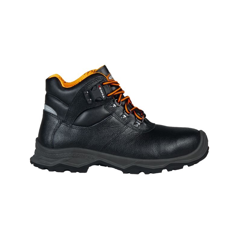 Tige en cuir imprimé, hydrofuge. Doublure en tissu 100% polyester, tridimensionnel en grosses mailles , respirant, absorbant, anti-abrasion élimine les mauvaises odeurs et l'humidité durant la marche. Semelle de propreté en polyuréthane, amovible, anatomique, isolante des hautes températures Heat Barrier. Semelle d'usure en PU/nitrile Heat Defender PU. Déchaussage rapide. Embout de sécurité en composite. Semelle antiperforation en textile haute ténacité. Coloris : noir Pointure : 39 à 47 Norme : CE Cat II - EN ISO 20345 - S3 CI HI HRO SRC