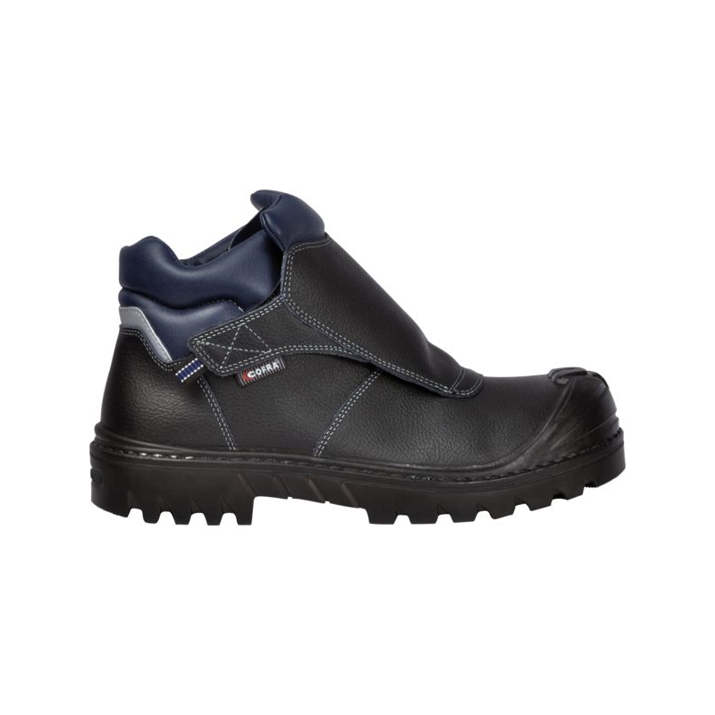 Tige cuir imprimé, hydrofuge. Doublure, respirante, absorbante, antibactérienne, résistante à l'abrasion. Semelle de propreté en E.V.A et tissu, épaisseur variable, thermoformée, perforée et recouverte en tissu respirant. Coutures ignifugées. Large bande velcro protégeant les lacets. Semelle d'usure + surembout en PU/nitrile, résistante à + 300 °C pour un contact 1 min. Embout de sécurité en composite. Semelle antiperforation en textile haute ténacité. Coloris : noir Pointure : 40 à 48 Norme : CE Cat II - EN ISO 20345 - S3 HRO SRC