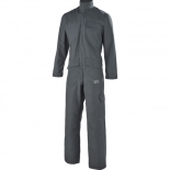 99% polyester 1% fibre antistatique - Toile, 290 g/m². Col montant, collerette de marquage. Fermeture par grippers, soufflets dos. 1 poche poitrine avec rabat fermé, 1 poche poitrine intérieure fermée. 2 poches basses avec rabats fermés, 1 poche cuisse avec rabat fermé. Passe-mains. Poignets fermés par grippers. Élastique dos. Pictos brodés sur le bas de la poche gauche. Entretien : lavage industriel 15797 8A Entrejambe : 80 cm + ourlet de 5 cm Coloris : gris acier Taille : 0 à 6 Norme : CE Cat III - EN 13034 type 6 - EN 1149-5 - EN 15797