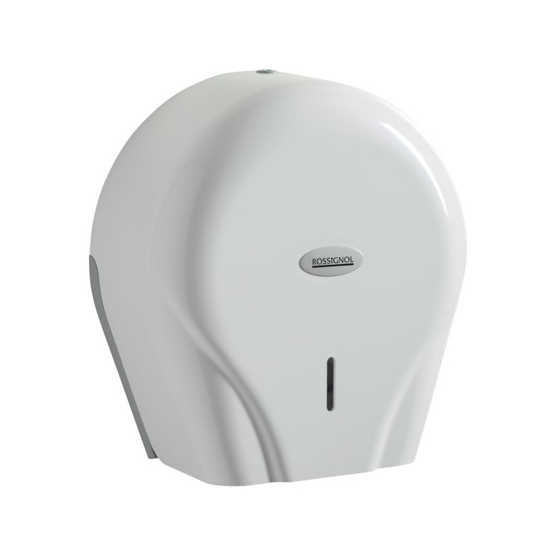 En ABS blanc pour rouleaux de papier hygiénique 200 et 400 m. Façade ouvrante avec serrure à clé, large fenêtre de contrôle du niveau de consommable. Déroulement du papier freiné par la forme du mandrin plastique. Fixation murale. Bords ciselés pour une découpe facile du papier.