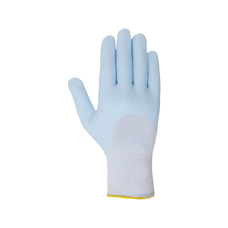 Enduction 3/4 nitrile. Support tricoté nylon, jauge 15. Ergonomique, ultraléger et respirant, ajustement parfait aux contours de la main. Contact alimentaire. Environnement : sec, légèrement humide Applications métiers : agro-alimentaire, manipulation d'aliments secs Taille : 6 à 10 Norme : CE Cat II - EN 388 (4131X)