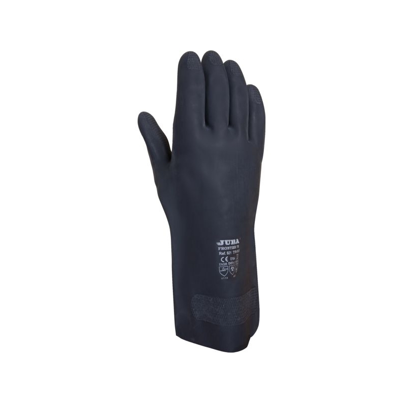 Néoprène. Finition paume et doigts nid d'abeille. Sans support, intérieur floqué à base de coton. Manchette droite. Environnement : chimique, huileux, humide, sec Applications métiers : industrie chimique, nettoyage industriel, plateformes pétrolières, raffinage, pétrochimie, travaux de forage, assainissement, pêche industrielle, sablage et grenaillage Épaisseur : 0,70 mm Longueur : 30 cm Taille : 6 (XS) à 11 (XXL) Norme : CE Cat III - EN 388 (3110X) - EN 374-1 type A (AKLMNOPST) - EN 374-5