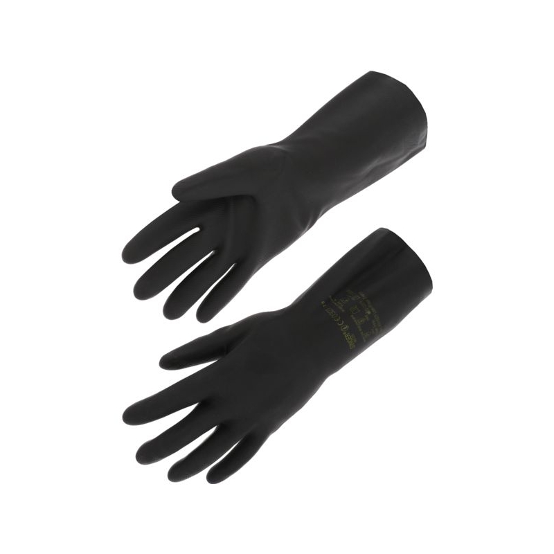 Latex/néoprène. Finition gaufrée. Intérieur floqué coton. Paume et doigts gaufrés, manchette droite. Environnement : chimique, huileux, humide, sec Applications métiers : imprimeries, maintenance industrielle, agriculture, travaux d’entretien et de nettoyage, fabrication de peintures, de vernis, industrie chimique Épaisseur : 0,68 mm Longueur : 32 cm Taille : 7 à 10 Norme : CE Cat III - EN 388 (2011X) - EN 374-1 type A (JKLNPT) - EN 374-5