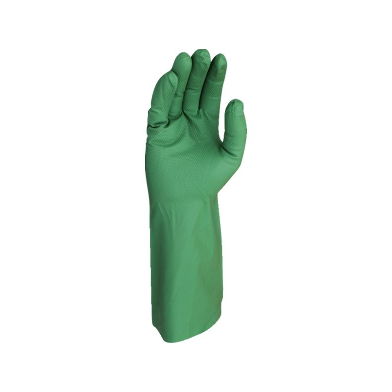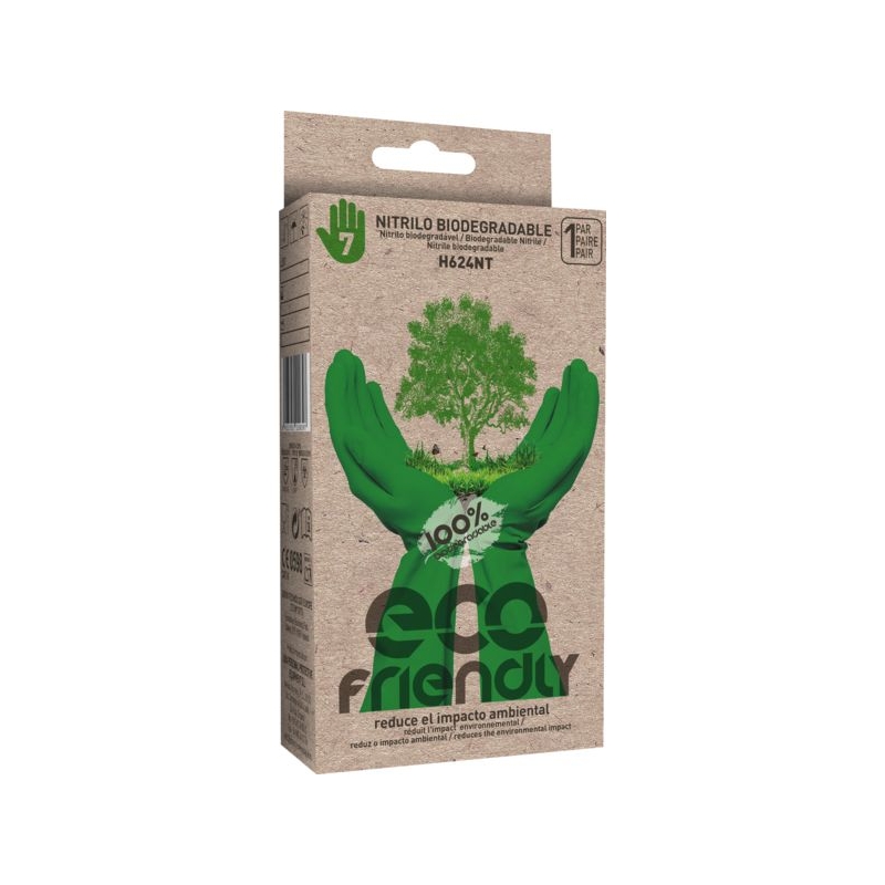 Nitrile, Finition antidérapante. Sans support, sans flocage. Manchette droite. Contact alimentaire. Environnement : chimique, huileux, mouillé, sec Applications métiers : industrie automobile et aérospatiale, conserves et procédés alimentaires, industrie agro-alimentaire, nettoyage industriel, laboratoires, industrie pétrochimique et pharmaceutique , imprimerie Longueur : 33 cm Épaisseur : 0.20 mm Taille : 6 (XS) à 10 (XL) Norme : CE Cat II - EN 388 (2001X) - EN ISO 374 type B (JKP) - EN ISO 374-5 Ce gant a été développé en incorporant un nanomatériau écologique qui accélère la biodégradation du nitrile, sans renoncer à la performance du gant. Il a une capacité d'autodestruction par le biais d'un processus biologique à 100% qui est activé lorsqu'il est jeté. Poids ultra léger qui apporte beaucoup de sensibilité et de déshérence.