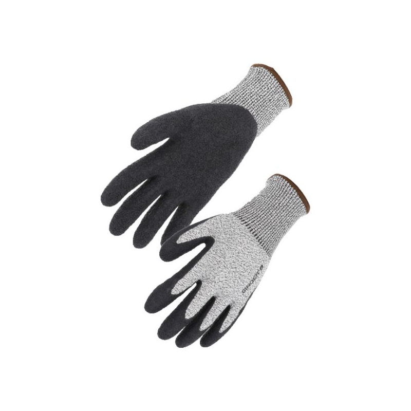 Enduction latex sur la paume, le pouce et les bouts de doigts. Finition crêpée. Support tricoté en polyéthylène haute densité, élasthanne et fibres d'acier inoxydables, sans couture, jauge 13. Dos aéré, poignet élastique. Environnement : humide, mouillé, sec Applications métiers : maintenance industrielle, assemblage automobile, manutention générale, prise de câbles, d'objets coupants, glissants, manipulations de matériaux bruts, abrasifs, de carrelages, de céramiques, de tôles Taille : 8 à 11 Norme : CE Cat II - EN 388 (3X42D) - EN 407 (X2XXXX)