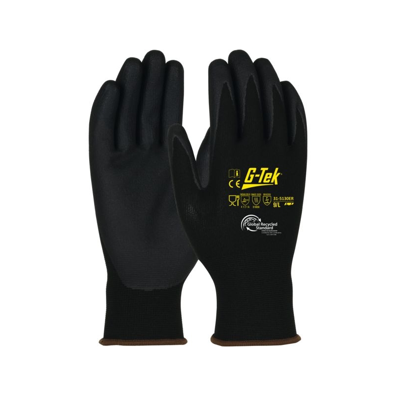 Enduction nitrile mousse sur paume et bouts de doigts. Support tricoté sans couture en PET (polytéréphtalate d'éthylène) recyclé à 90% et 10% d’élasthanne, jauge 13. Labels Global Recycled Standard et Okeo Tex. Traitement antibactérien Sanitized®. Contact alimentaire. Écran tactile. Environnement : sec, humide Applications métiers : assemblage, manipulation fine, manipulation de petites pièces et matériaux, fabrication. Taille : 6 à 12 Norme : CE Cat II - EN 388 (4121A) - EN 16350 - EN 407 (X1XXXX) Emballé dans un poly-sac biodégradable de 6 paires.