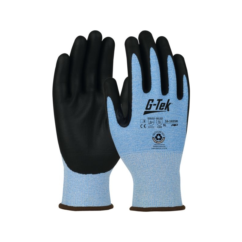 Enduction nitrile mousse sur paume et bouts de doigts. Support tricoté en fibres en PET recyclé, polykor et en élasthanne, sans couture, jauge 18. Dos aéré, poignet tricot élastique. Écran tactile. Environnement : humide, huileux, sec Applications métiers : travaux d'assemblage, maintenance, industrie du bois, logistique et entrepôts, manipulation de tôles, manipulation de petites pièces pointues Taille : 6 à 11 Norme : CE Cat II - EN 388 (4X42C) - EN 407 (X1XXXX) 10% du poids du gant est fabriqué en matière recyclée ce qui permet une réduction des émissions de 29.16g par paire