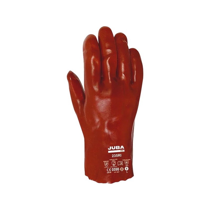 Enduction en PVC double couche. Support coton interlock. Manchette droite, finition lisse. Traitement antibactérien Sanitized®. Environnement : chimique, huileux, humide, sec Applications métiers : industries chimiques, nettoyage, raffineries, manipulation de citernes ou travaux en contact avec de l'eau ou des liquides, pêche Épaisseur : 1,10 mm Longueur : 35 cm Taille : 8.5, 9.5 Norme : CE Cat III - EN 388 (4121X) - EN 374-1 type A (AKLMPST) - EN 374-5