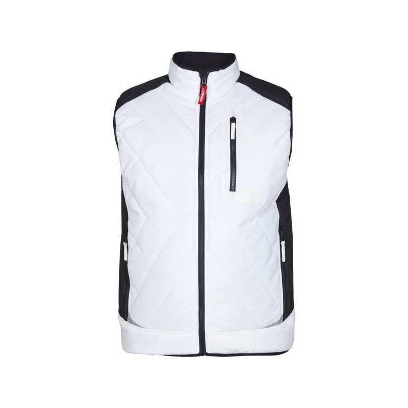 Extérieur : 100% polyester, 180 g/m². Intérieur : 100% polyester taffetas matelassé avec doublure intermédiaire FE-Insulate. Coupe-vent avec col montant, bandes virgules réfléchissantes devant et dos. Fermeture à glissière sur le devant. Deux grandes poches basses et une poche poitrine devant, avec fermeture à glissière. Une poche intérieure. Entretien : lavage ménager Coloris : blanc, bleu foncé, bleu marine, gris anthracite, gris anthracite/rouge, noir, kaki Taille : XS à 4XL