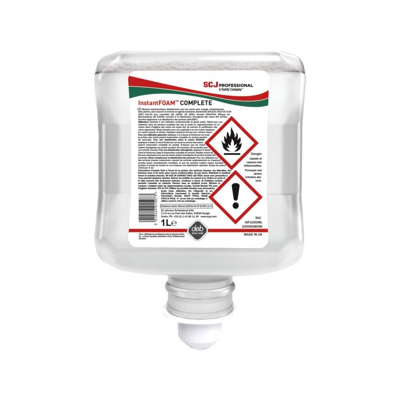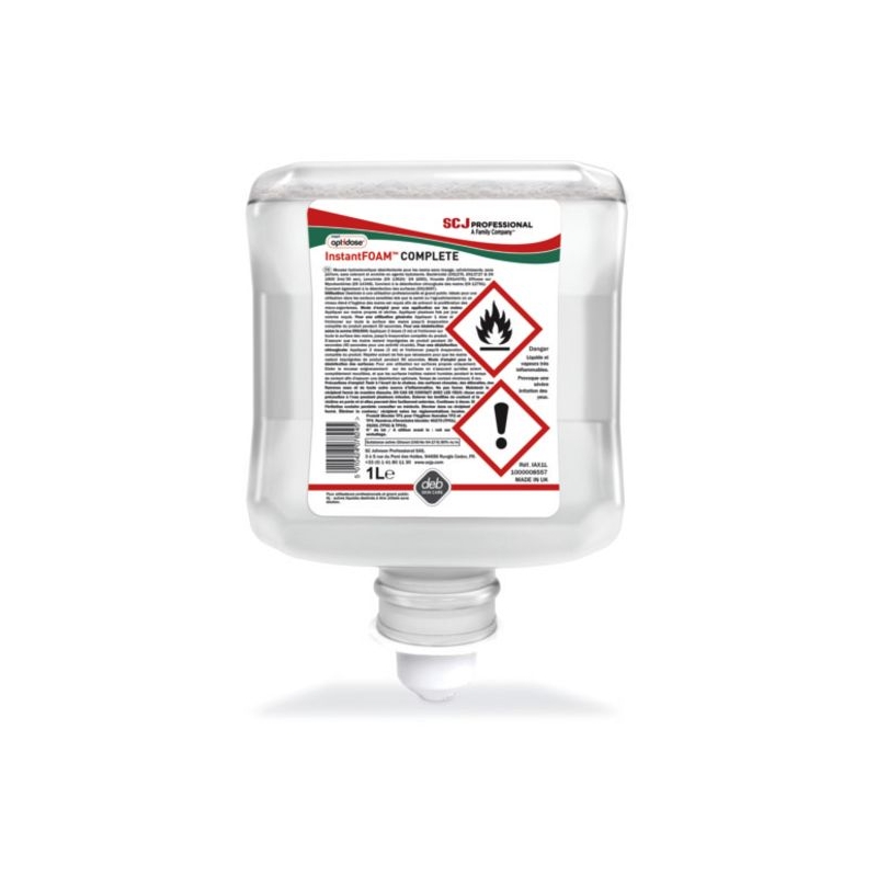 Mousse désinfectante hydroalcoolique avec agents hydratants pour les mains, extrêmement efficace, sans parfum ni colorant. S’utilise sans eau et élimine 99,999% des germes les plus courants en 30 secondes seulement. Formule hypoallergénique adaptée à un usage fréquent, non altérante et compatible avec les gants, idéale pour une utilisation au contact des aliments. Utilisation : secteurs où un niveau d'hygiène élevé est requis, secteur médical, agroalimentaire, restauration collective, bureau Conforme à la Réglementation Européenne Biocides n°528/2012. Conforme aux normes bactéricides (EN 1500, EN 12791, EN 1276, EN13727), levuricide (EN1650, EN13624), tuberculocide (EN 14348) et virucide (EN14476). Utilisez les biocides avec précaution. Avant toute utilisation, lisez l'étiquette et les informations concernant le produit. La cartouche s'utilise avec le distributeur réf. 19064.