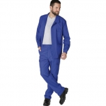 100% coton - Croisé, 320 g/m². Traité antiretrait. Ceinture 5 passants avec élastique côtés, braguette boutons, poches italiennes doublées du même tissu, poche cuisse à rabat fermé par grippers cachés, 1 poche arrière à bouton et 1 poche mètre. Entrejambe : 82 cm Coloris : blanc, bleu bugatti, gris Taille : 0 à 6