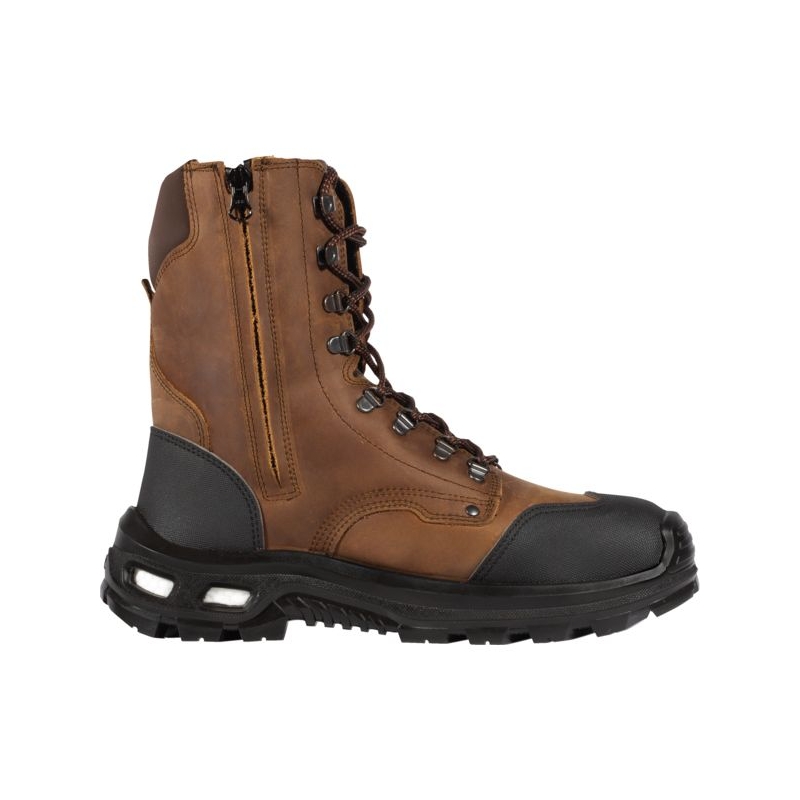 Tige en cuir pleine fleur hydrofuge finition pull-up. Respirante et imperméable. Renfort de protection au niveau des malléoles. Remontée de la semelle PU sur l’avant pied pour plus de protection. Doublure de la jambe en tissu tri-dimensionnel. Fermeture par laçage sur 6 paires de passe-lacets et 2 paires de crochets métalliques. Première de propreté Memory en polyuréthane et mousse à mémoire de forme. Semelle d'usure Synergy-BTP en bi-composant PU et insert en E-TPU, Infinergy® de BASF pour un amorti exceptionnel et une capacité extraordinaire à restituer plus de 55% de l’énergie accumulée pendant la marche. Embout de sécurité en aluminium. Semelle antiperforation en acier inoxydable. Poids : 1,576 kg Pointure : 38 à 47 Norme : CE Cat II - EN ISO 20345 - S3 CI SRC