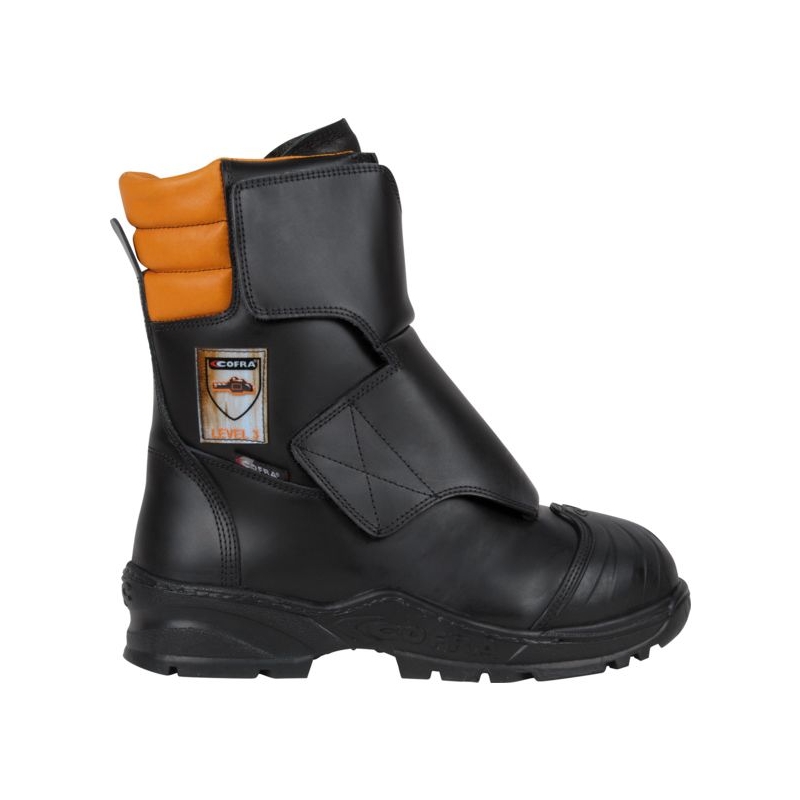 Tige en cuir fleur hydrofuge avec protection anti-coupure. Doublure 100% polyamide, respirant, absorbant et anti-abrasion. Semelle de propreté anatomique, antistatique, perforée, en souple polyuréthane parfumé. Isole du froid et de la chaleur. Semelle d'usure cousue, entièrement en gomme nitrile, résistante à +300 °C pour contact (1 minute). Embout de sécurité en acier. Semelle antiperforation en fibres haute ténacité. Coloris : noir Pointure : 39 à 48 Norme : CE Cat II - EN ISO 20345 - A E P FO HRO WRU SRC - EN ISO 17249 classe 3
