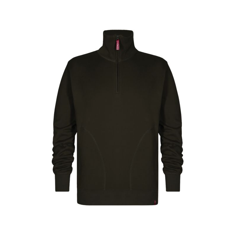 70% coton 30% polyester - Molleton, 320 g/m². Col montant et fermeture à glissière, encolure, taille et manches en bords côtes renforcées, surpiqûres fantaisie, grandes poches latérales. Coloris : bleu marine, gris foncé, noir Taille : XS à 4XL