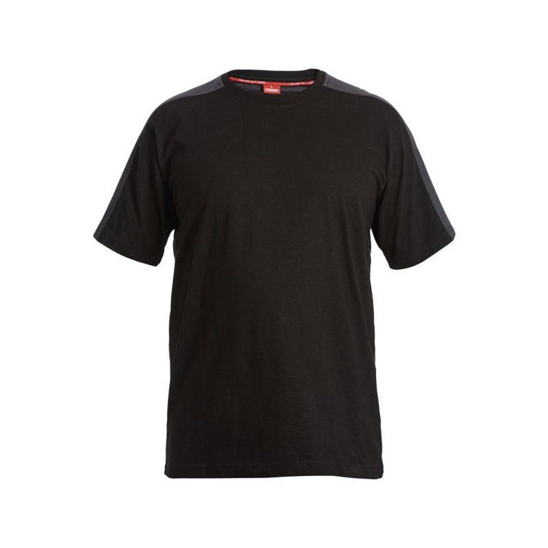 60% coton 40% polyester - Jersey, 180 g/m². Manches courtes. Col rond, bandes rétroréfléchissantes sur les épaules. Entretien : lavage ménager Coloris : bleu/noir, bleu marine/bleu roy, gris/noir, gris/rouge, kaki/noir, noir/gris, marron/gris, rouge/gris, vert/noir Taille : XS à 4XL