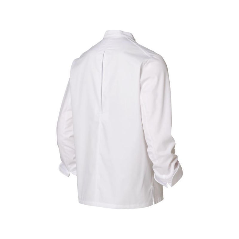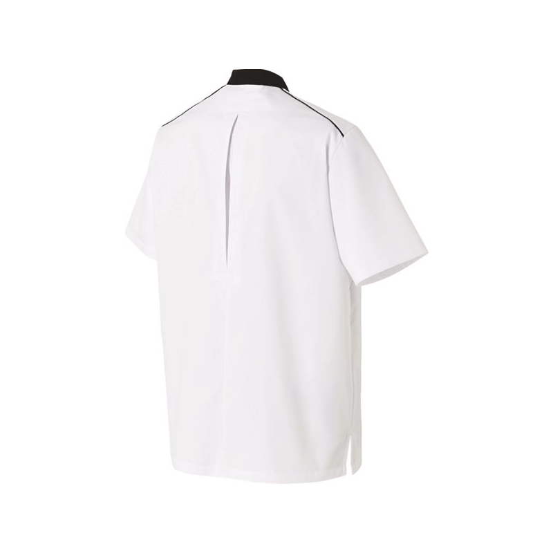 65 % polyester 35 % coton - Sergé 195 g/m², Maille respirante alvéolée double face antibactérien 100% polyester, 160 g/m². Col officier et liseré contrastés. Fentes côtés. Fermeture asymétrique par pressions non apparentes. 1 poche poitrine côté gauche. 1 poche stylo sur manche gauche. Soufflet dos et empiècement aisselle en maille respirante antibactérienne. Coloris manches longues : blanc/gris, blanc/noir, blanc/blanc, blanc/denim Coloris manches courtes : blanc/noir, blanc/gris Taille : 00 à 6