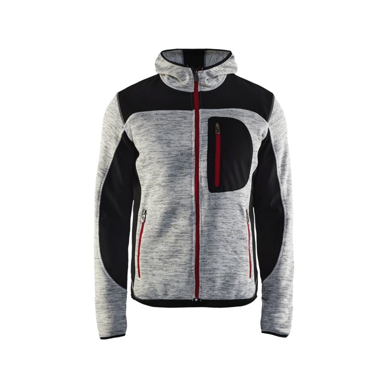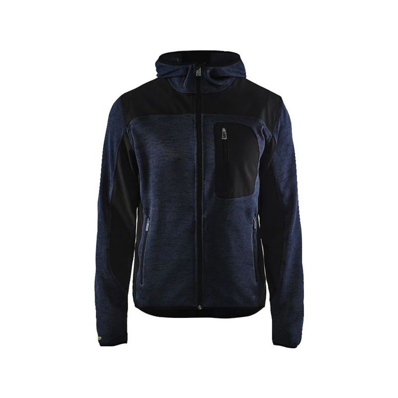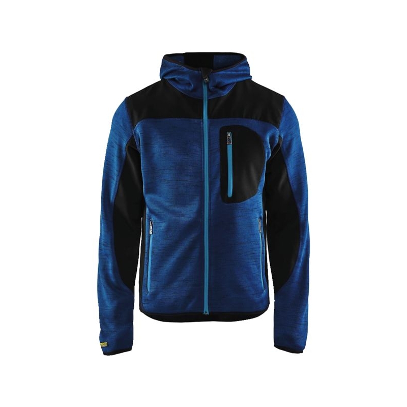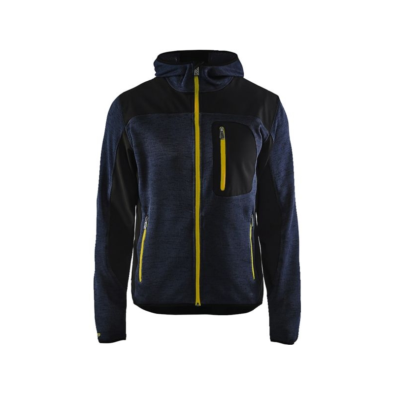 Bimatière : tricoté 100% polyester, 380 g/m². Softshell 3 couches (94% polyester 6% élasthanne enduit TPU) + 100% polyester polaire, 330 g/m². Softshell doublé polaire sur les épaules, les côtés et les bras. Fermeture à glissière jusqu’en haut du col et multipoches. Capuche fixe et dos relevé. Coloris : jaune fluo/noir, vert armée/noir, orange fluo/noir, marine foncé/jaune, marine foncé/noir, marine/marine, gris chiné/noir, bleu/noir, gris anthracite/noir Taille : XS à 4XL